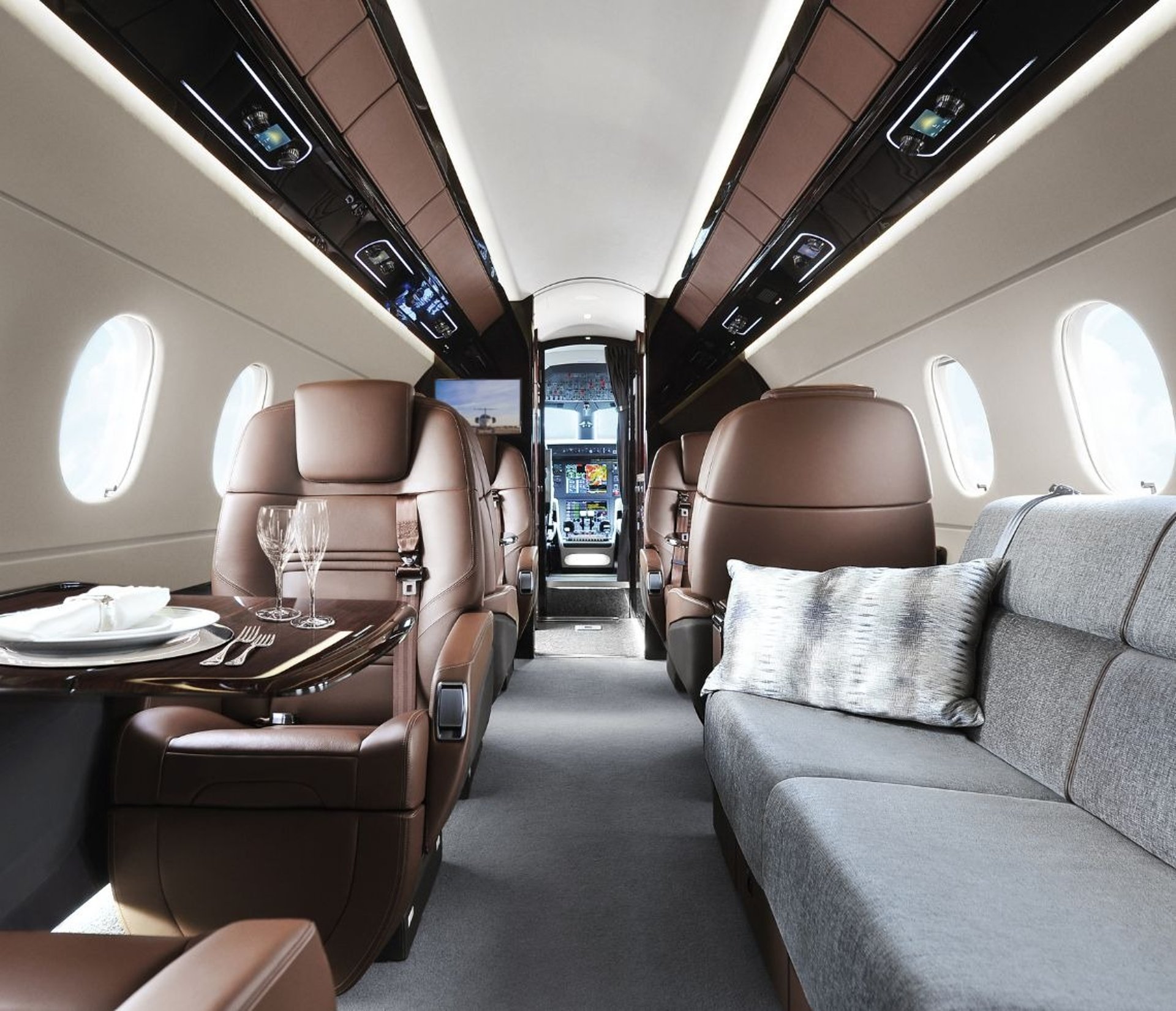 Typically accommodating 12–19 passengers, Ultra Long-Range Jets feature expansive, multi-zone cabins with generous stand-up height and dedicated areas for dining, working, and relaxation. With ranges exceeding 10,000–13,000 km — approximately 10 to 14+ hours of flight time, depending on aircraft and conditions — they are ideally suited for long-haul and transoceanic missions.